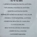 Szükség van-e tetőszigetelésre és/vagy tetőfedésre: Igen, tetőszigetelésre és -fedésre is Tetőtípus: Nyeregtető Tetőfedés anyaga: Cserepeslemez Tető alapterülete (m2): 225 Továbbá szeretném: 10% kedvezmény az anyagok vásárlására Részletek: Demjénben, tervezés alatt álló L-alakú családi ház, 228m2 tetőfelület, RAL 8017 szinű matt csokibarna cserepes lemez, 30 cm kőzetgyapot hőszigetelés ,A megfelelő szellőzés érdekében javasolt 5 cm vastag ellenlécezést alkalmazni. Kérésre fedélszék tervet tudok küldeni. Mikor kell elkezdeni: Több mint 3 hónap múlva