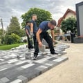 Az egyik kaputartó téglaoszlopot újra kell építeni, szükséges mértékig alapozni. A kihívás az, hogy az oszlop alatt fut egy hársfa gyökérzete, ezért olyan megoldást kell találni, ami az oszlop hosszú távú stabilitását és a gyökér túlélését egyszerre biztosítja. Ezzel együtt vagy ettől független feladat új kétszárnyú kapu beépítése: fém szerkezet fa vagy fahatású borítással, távvezérlés nélkül, alátámasztással, zárakkal.